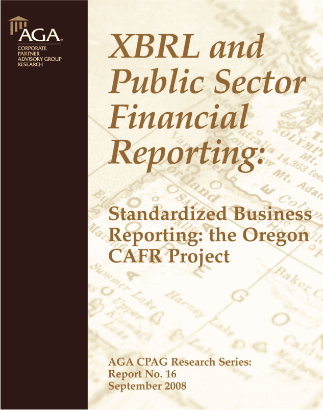 The report outlines the benefits of developing and using an XBRL-taxonomy (short for eXtensible Business Reporting Language) to tag data in a state’s Comprehensive Annual Financial Report (CAFR). The report provides a brief technical overview of XBRL as well as graphics demonstrating the process of converting the CAFR data into XBRL, creating the instance document and rendering the instance document into a readable conventional file format.